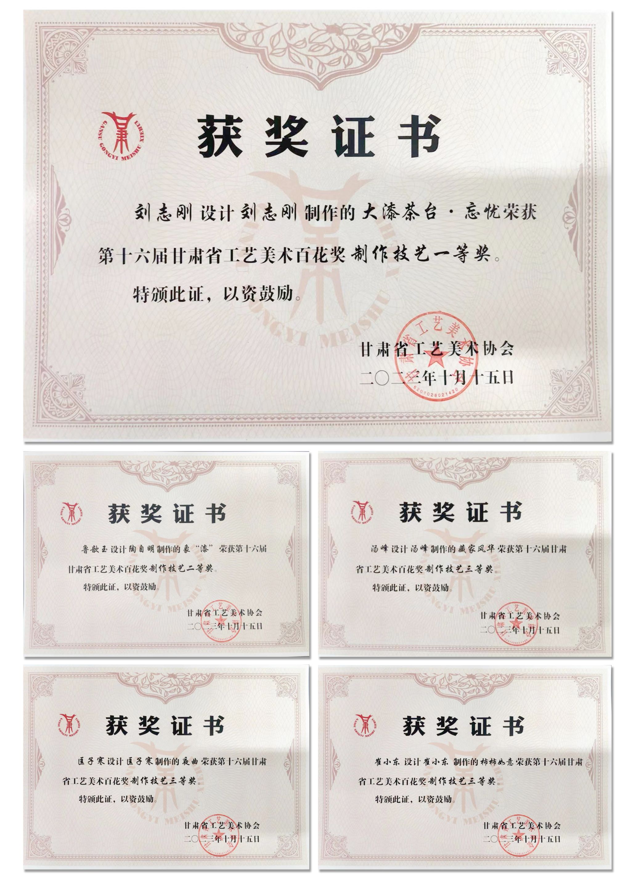 甘肅省工藝美術百花獎是我省工藝美術行業的最高獎項,該獎項評審每兩年舉辦一屆,所獲獎項是評定甘肅省工藝美術大師、甘肅省工藝美術專業大師,推薦評選中國工藝美術大師和評定工藝美術技術職稱的主要依據。