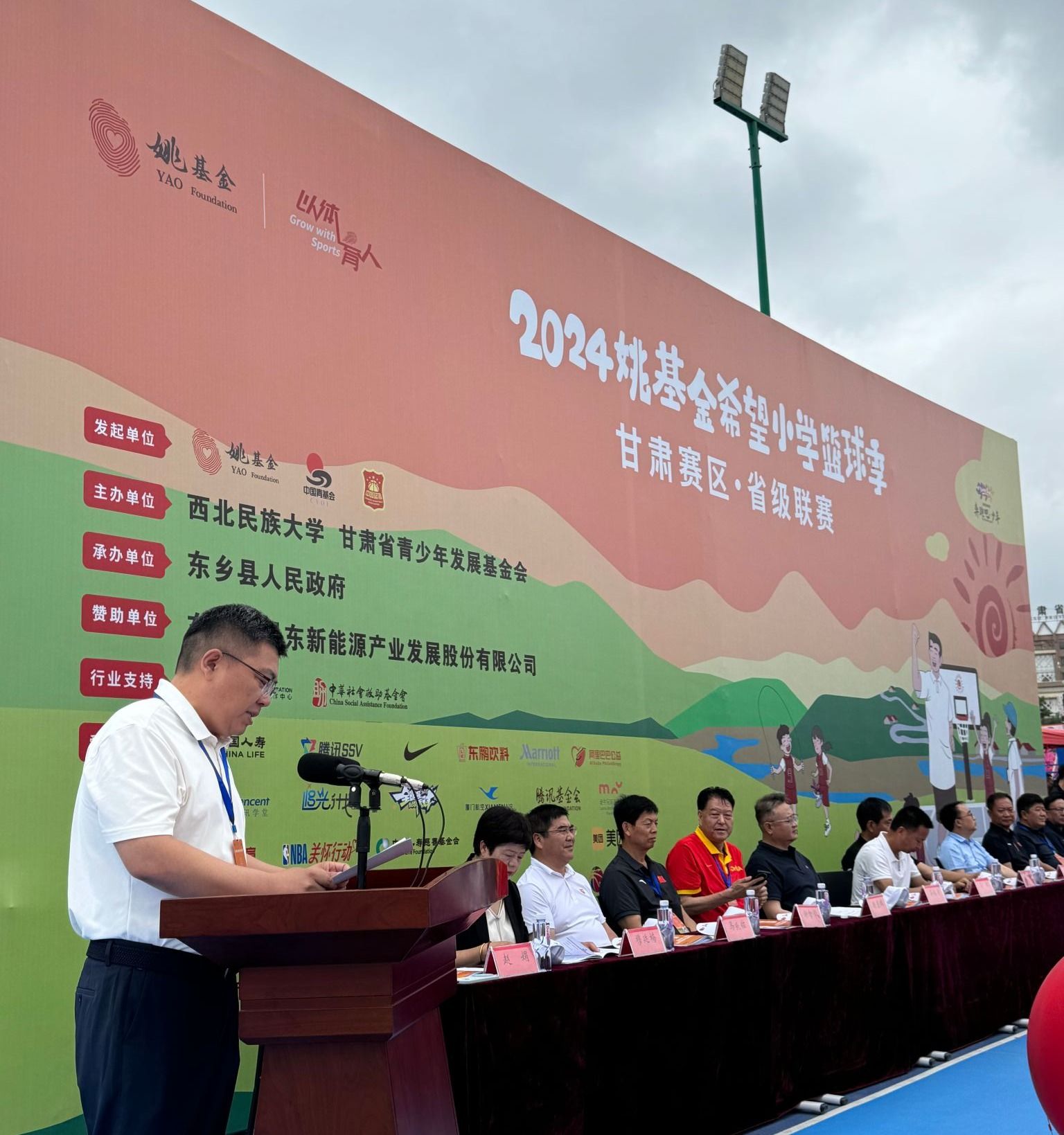 7月15日,2024姚基金希望小學籃球季甘肅賽區省級聯賽在東鄉縣隆重開幕。校黨委常委、副校長、校體委主任徐紹文,姚基金理事、戰略發展委員會主任涂猛,臨夏州委常委、東鄉縣委書記馬斌,省基金會、省體育局、省籃協相關同志受邀出席活動。