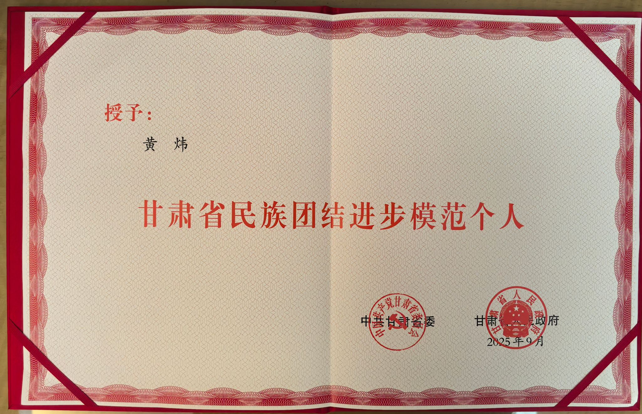 9月23日,甘肅省民族團結進步表彰大會在蘭州召開,大會對全省模范集體和模范個人進行了表彰。我校音樂學院黃煒教授獲評“甘肅省民族團結進步模范個人”。