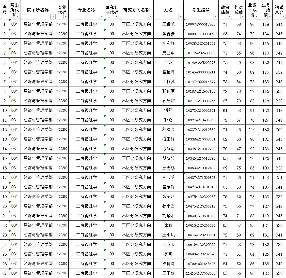 2024年管理學院工商管理學考生復試名單(調劑考生)