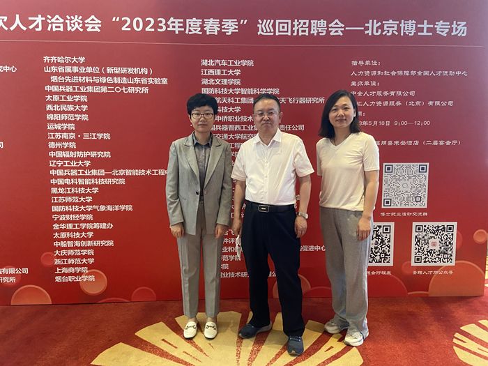 在京期間,調(diào)研組一行還參加了中博會高層次人才洽談會“2023年度春季”巡回招聘會。招聘會現(xiàn)場,積極宣傳學校的人才引進政策,為前來咨詢的博士生詳細介紹學校、學院基本情況,耐心解答學校人才引進政策。