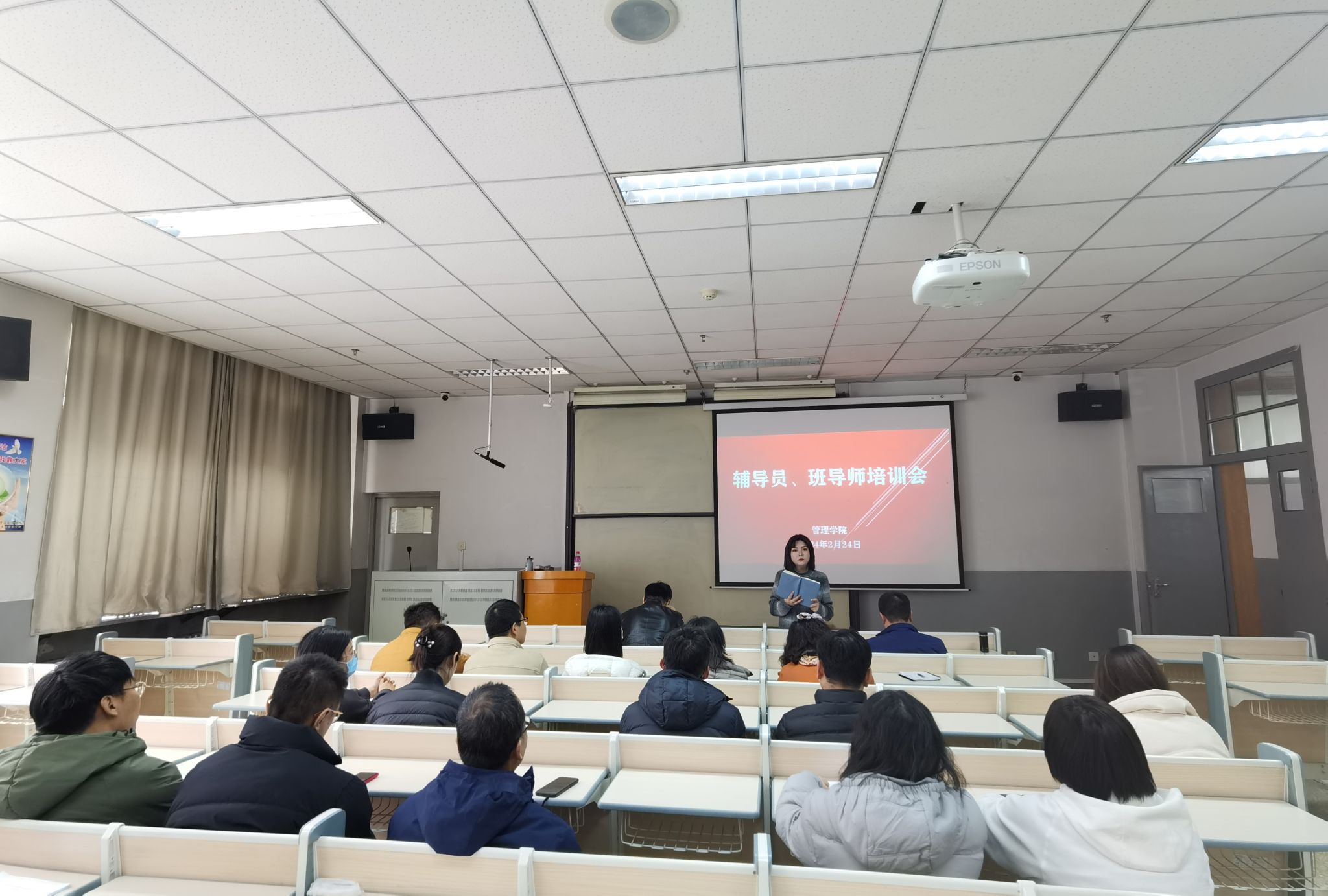 2月24日下午,管理學院在文津樓306室召開2024年度春季學期輔導員、班導師培訓會,學院領導班子、全體輔導員、班導師參加。會議由學院黨委副書記米爾古麗主持。