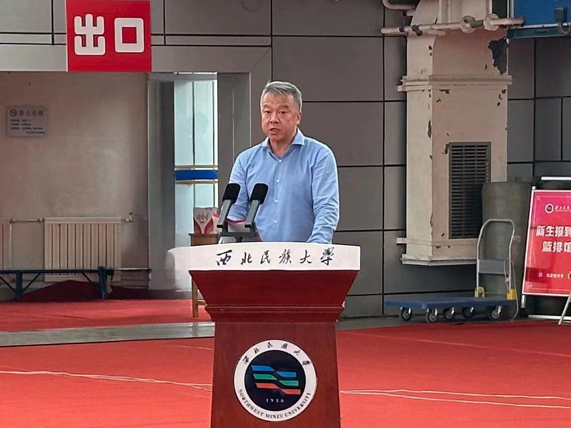 學院正處級干部于蘭生聚焦馬克思主義民族觀、宗教觀和社會主義核心價值觀、鑄牢中華民族共同體意識、愛國主義等方面開展了教育,并從意識形態安全、嚴格落實“兩個不得”“五個嚴禁”、文明安全使用網絡、防電詐、遵守校規校紀等方面對新生進行了教育、引導和要求。