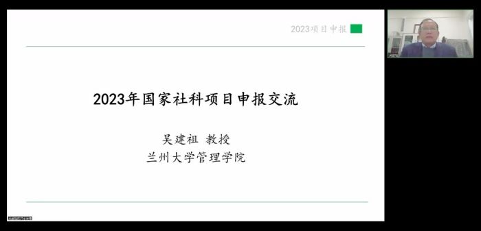 為做好2023年度國家基金項目申報工作,1月10日,經(jīng)濟(jì)與管理學(xué)部舉行國家基金項目申報培訓(xùn)暨動員會,邀請?zhí)m州大學(xué)管理學(xué)院副院長吳建祖教授線上為師生開展專題培訓(xùn)。會議由管理學(xué)院副院長孫永龍主持,70余名師生線上聽講。