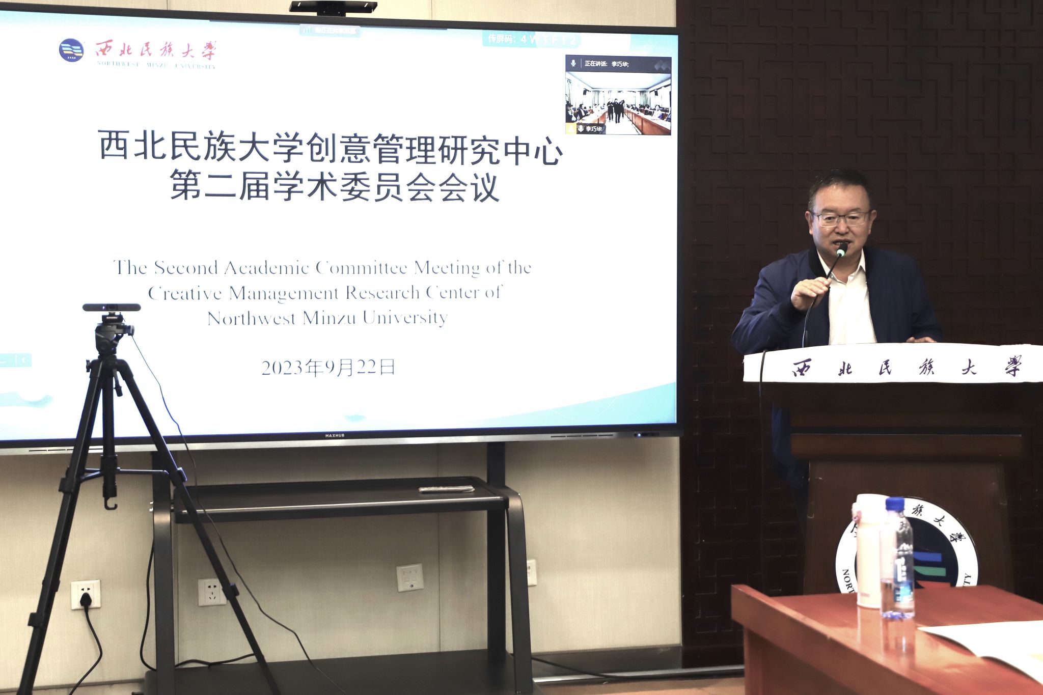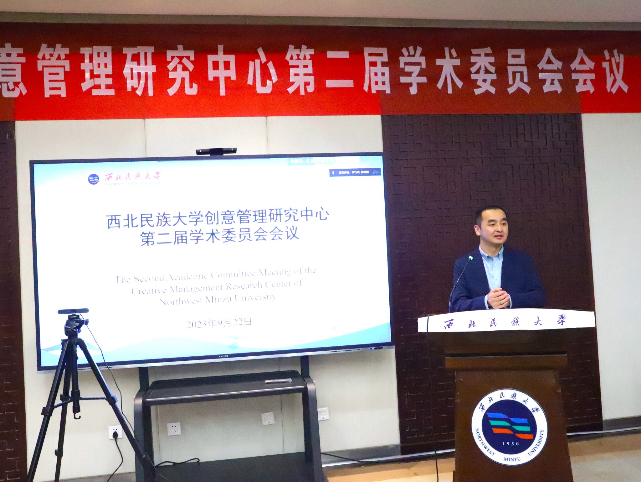 9月22日下午,西北民族大學創意管理研究中心第二屆學術委員會議在西北新村校區禮堂東廳舉行,會議由創意管理研究中心負責人、學校黨委人才辦公室副主任孫永龍主持,中心學術顧問、學術委員、行業資深專家、學院負責人及中心師生參加。