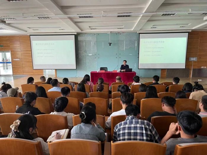 李伯一從信息技術革命(ICT)的演化路徑,以及持續的耦合增益效應:“新經濟”的發展動力、面向創新的創新、數字經濟與新全球化運動等方面講解,深入淺出解讀數字經濟創新范式。整場講座內容豐富新穎,現場氣氛活躍、互動頻繁。孫永龍在總結講座內容時強調,本次講座深具前瞻性,從國際視野、前沿角度對數字經濟創新問題進行了詳細解讀,有效拓展了師生國際視野,讓大家對數字經濟領域前沿動態有了新的認知。