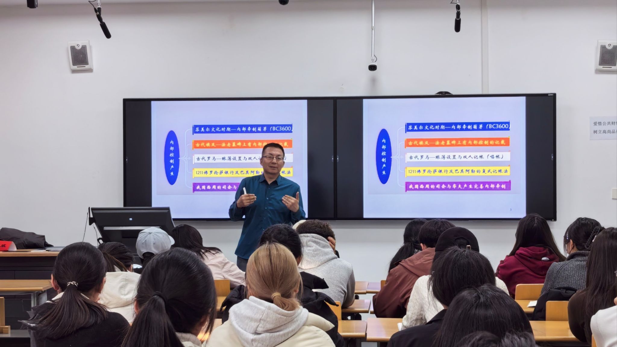馬建威教授首先介紹了內部控制的淵源,詳細講解內部控制的形成、發展,設計內部控制的關鍵要素,以及內部控制的框架、基本規范和企業風險管理受等,鼓勵大家圍繞內部控制多做研究,力爭多出研究成果,助力管理類學科專業發展。馬建威教授還一一解答了同學們的提問。整場講座內容豐富、深入淺出、精彩紛呈。