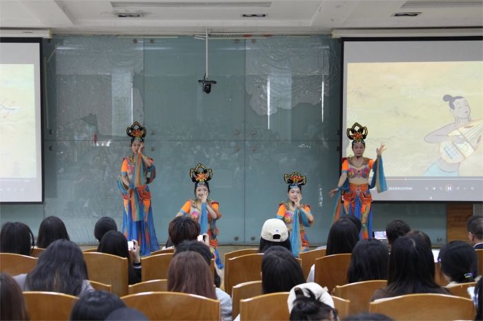 在舞蹈、情景劇展示環節,表演者以動態的歌舞演繹靜態的石窟藝術,用接地氣的語言、聽得懂的道理、講故事的辦法演示自古以來各民族交往交流交融的史實。看萬里千年變遷,聆繚繞絲路梵音,進一步堅定了師生的歷史自信和文化自信,增強了實現中華民族偉大復興的信心與決心。