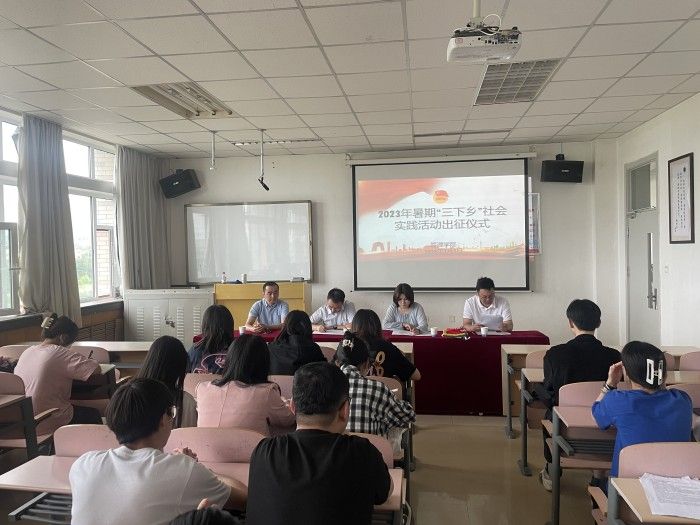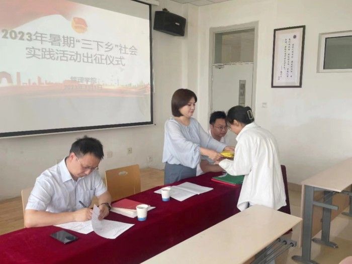 7月5日,管理學院在致善樓413教室舉行2023年暑期“三下鄉”社會實踐出征儀式。管理學院領導向黨、米爾古麗、孫永龍出席,社會實踐團全體成員參加,儀式由學院團委副書記周自高主持。