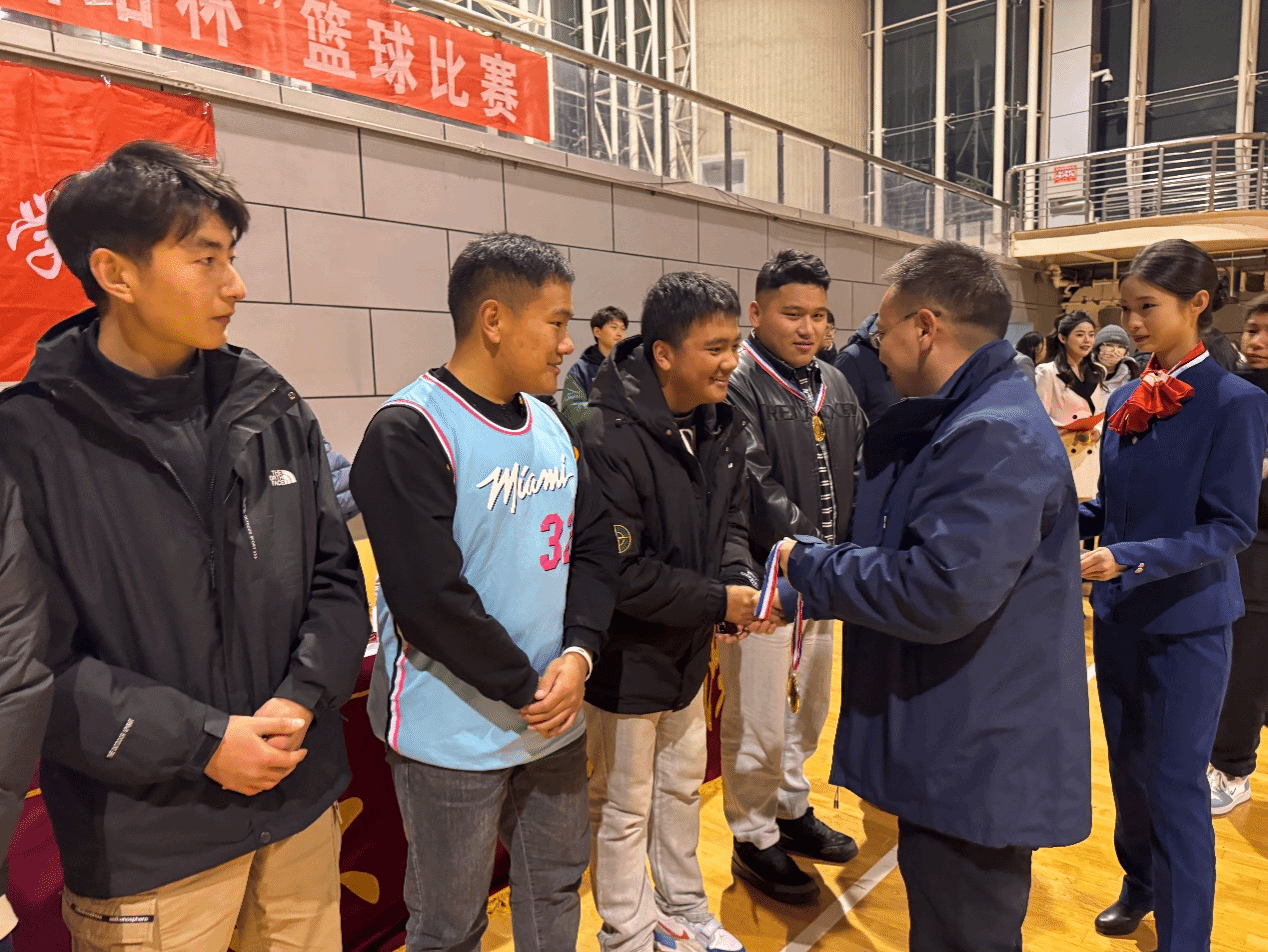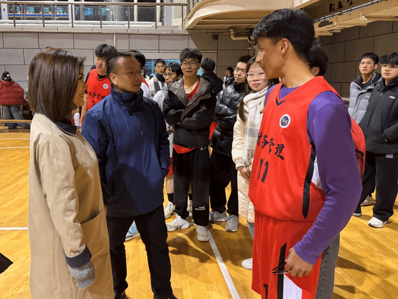 12月14日晚,榆中校區籃排館外寒風凜冽,管理學院2023年“團結杯”籃球賽決賽在館內火熱進行。2020級工商管理、2022級財務管理以及2021級財務管理、2023級工商管理2班四支隊伍捉對廝殺,爭奪冠軍、季軍。學院負責人向黨、米爾古麗和老師張金平、董城佑、李文瑞、陳銀池觀戰并為獲獎集體頒獎,400余名同學現場吶喊助威。
