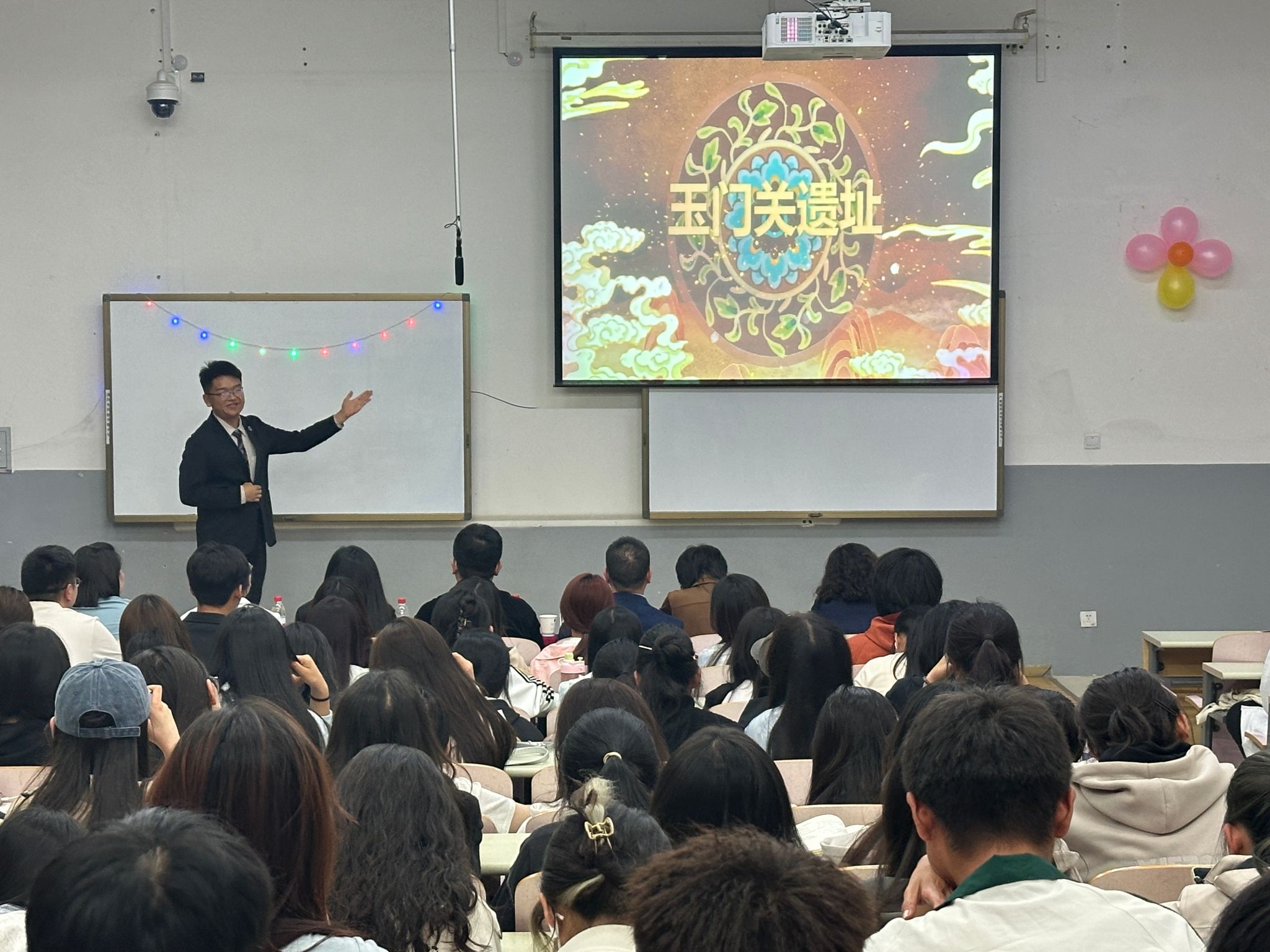 自大賽啟動以來,來自六個學院(部)的30名參賽選手經過初賽、復賽的激烈比拼,最終8名選手進入決賽。決賽設“娓娓而談”“口若生花”“才藝展示”三個環節。選手們緊扣敦煌文化主題,以PPT、Vlog等方式繪聲繪色講解飛天壁畫的瑰麗、彩塑舞蹈的靈動,栩栩如生描繪輕盈飛舞的姿態和艷麗絢爛的色彩,透露出蘊含其中的浪漫主義氣息,展現出中華優秀傳統文化的獨特魅力和時代風采,充分體現出決賽選手的專業能力和專業素養。特別是“口若生花”環節,8位選手在敦煌文旅集團運營的景點中隨機抽取雅丹魔鬼城、玉門關、敦煌夜市等景點限時講解,既檢驗決賽者的知識儲備,又考驗大家的應變能力和答題策略,選手們的精彩講解讓觀眾仿佛身臨其境,將現場的氛圍一次次推向高潮。