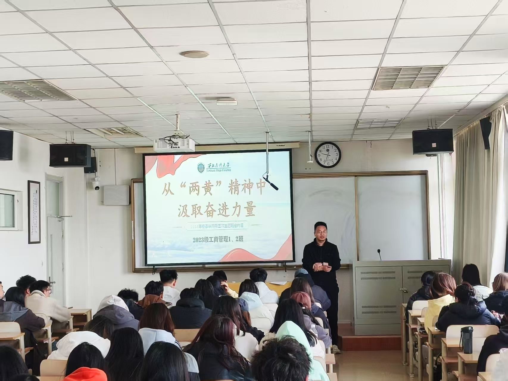 近期,管理學(xué)院組織開展“從‘兩黃’精神中汲取奮進(jìn)力量”主題班會(huì),引導(dǎo)學(xué)生深入領(lǐng)會(huì)、積極踐行“兩黃”精神。