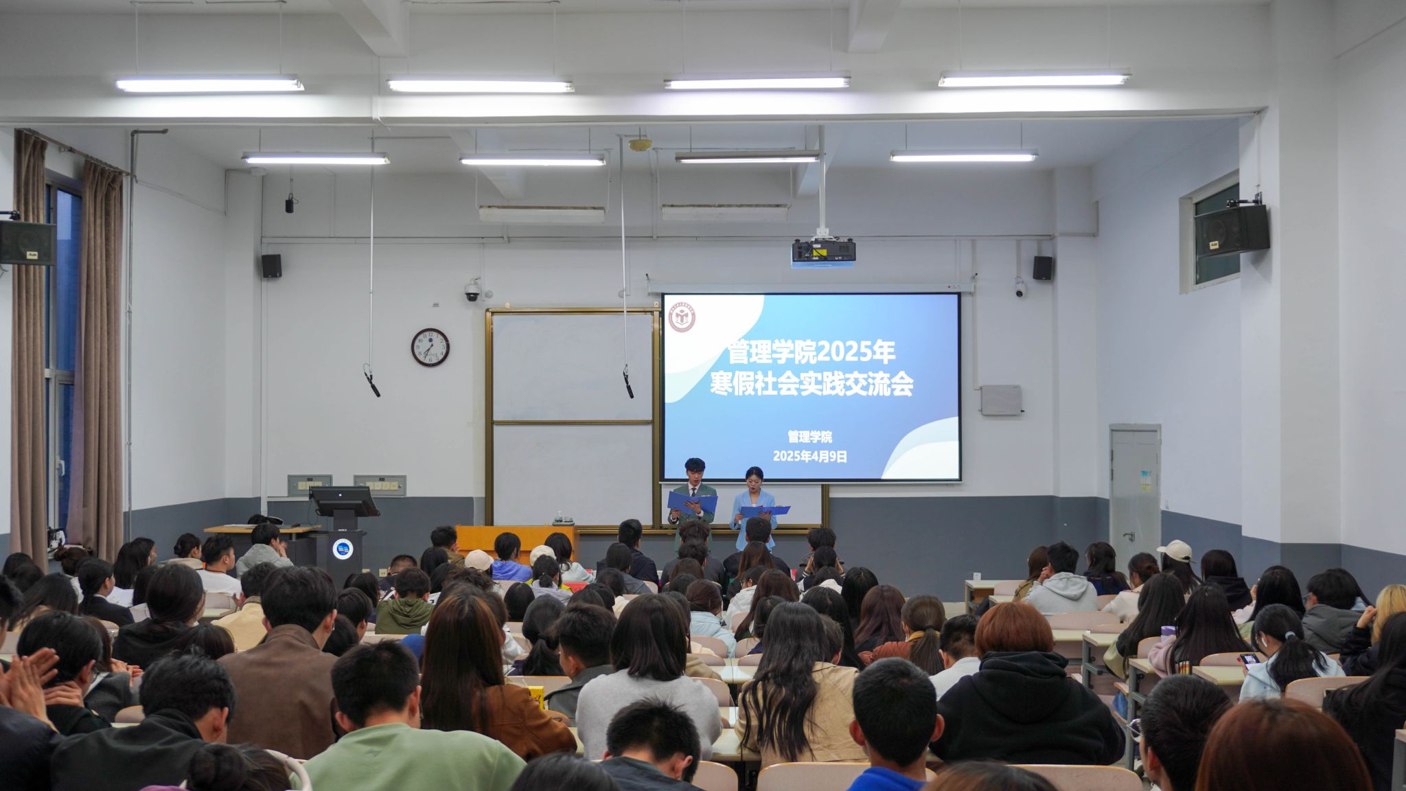 4月9日晚,管理學(xué)院在致真樓107室成功舉辦2025年寒假社會實踐交流分享會。學(xué)院團委負責(zé)人、學(xué)生代表130余人參加活動。