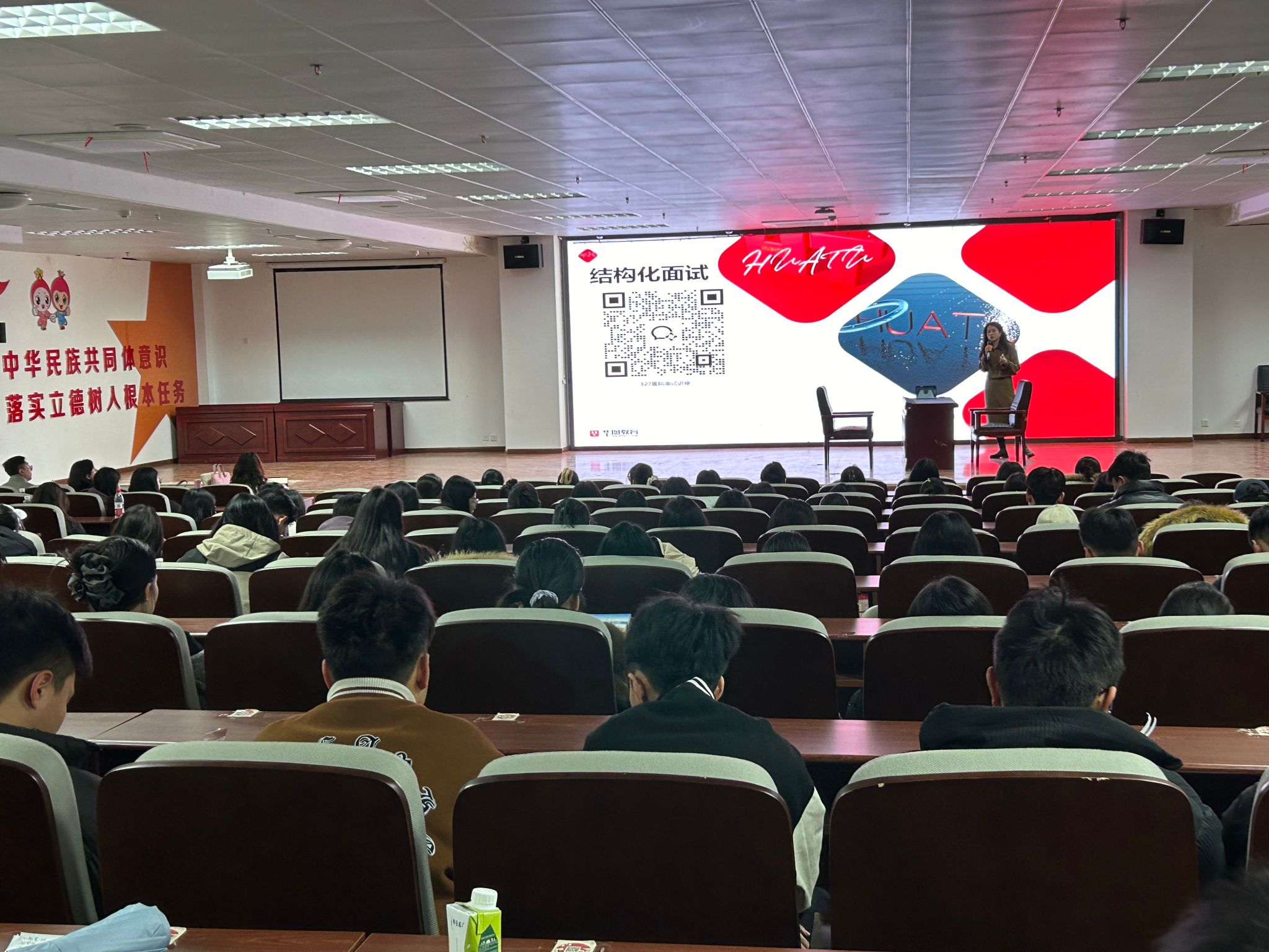 為引導(dǎo)在校生熟悉結(jié)構(gòu)化面試的基本流程和考情考務(wù),掌握結(jié)構(gòu)化面試中的語(yǔ)言表達(dá)方法和答題技巧,3月27日上午,管理學(xué)院邀請(qǐng)華圖教育科技有限公司臧鴻瑜老師在榆中校區(qū)就業(yè)大廳舉辦了以“‘面’展風(fēng)采 ‘職’點(diǎn)迷津”為主題的面試專題講座。學(xué)院2022級(jí)各專業(yè)的200余名學(xué)生參加。