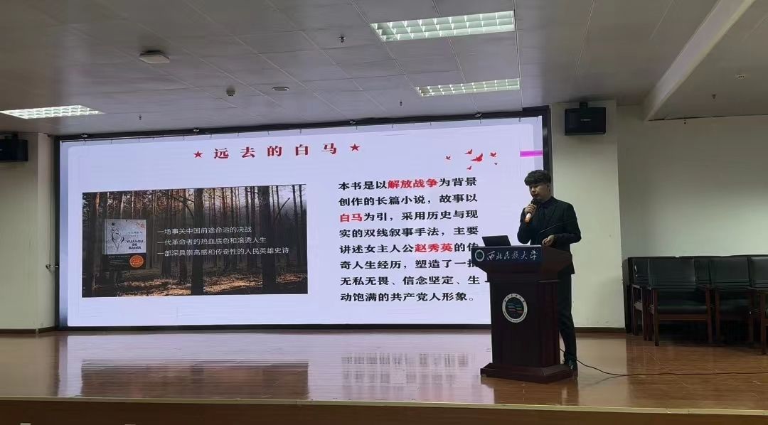 為進一步鑄牢中華民族共同體意識,創新開展民族團結進步教育工作,引導廣大師生在閱讀優秀典籍中啟智增慧、固本培元,在經典文化傳承中塑造文化自信自強的品格,匯聚中華民族偉大復興的力量,11月3日下午,由黨委統戰部、中華民族共同體學院、中國語言文學學部、化工學院共同舉辦的書香新時代,“典”亮新征程主題讀書分享會在榆中校區就業大廳舉行。甘肅省文聯黨組書記、主席王登渤受邀參加。西北民族大學黨委副書記、副校長玉蘇甫江,校黨委統戰部、各學院師生代表參與本次讀書分享會。