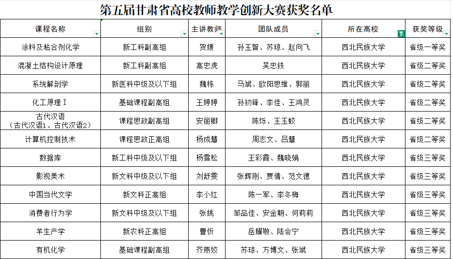 5月17日至18日,由甘肅省教育廳主辦的第五屆甘肅省高校教師教學創新大賽現場賽在蘭州理工大學落下帷幕。我校共有13位教師(團隊)入圍省賽,12位教師(團隊)獲獎,共榮獲一等獎1項、二等獎5項、三等獎6項。