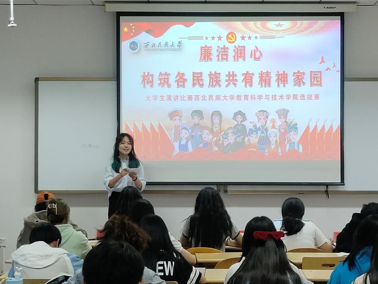 根據學校第十六屆黨風廉政宣傳月活動的安排,為弘揚新時代廉潔文化,有形有感有效鑄牢中華民族共同體意識,教育科學與技術學院于2023年5月16日晚在格物二號樓南樓308舉辦“廉潔潤心,構筑各民族共有精神家園”主題演講比賽選拔賽。學院輔導員、學生代表擔任評委。