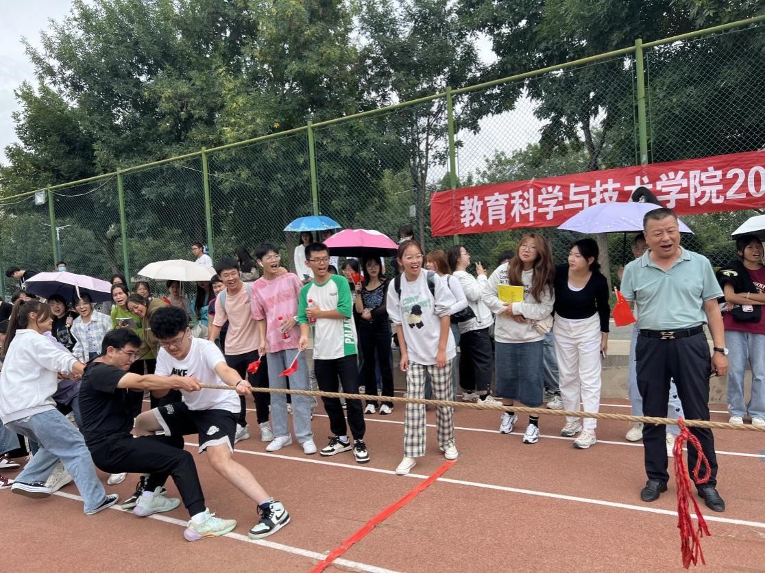2023年9月11日中午,教育科學(xué)與技術(shù)學(xué)院在民美體育場(chǎng)舉辦2023年“迎新杯”拔河比賽。學(xué)院黨委書記久美道杰,黨委副書記、行政副院長(zhǎng)俞布仁,輔導(dǎo)員張鵬、高潔以及2023級(jí)全體同學(xué)參加活動(dòng)。