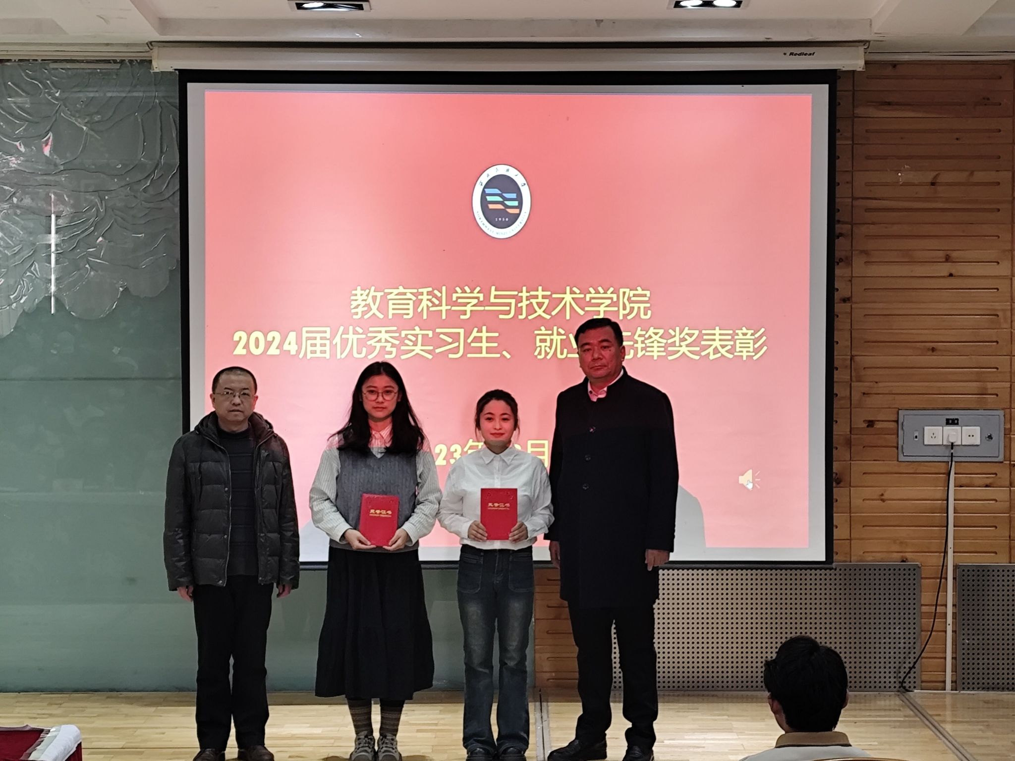 會上,來自4個專業的鐘雅琳、楊朝順、薛怡、李家歡、康虹、康金龍等6名同學依次匯報了自己在實習期間的經歷和收獲,分享了所學到的專業知識和實踐技能,在實習單位的工作體驗和感受。學院政治輔導員王剛老師向同學們分析了當前畢業生就業心態,指出要認清就業形勢、明確就業目標、拓寬就業渠道,介紹了如何及時準確填報畢業去向登記信息。劉洋副院長宣讀了2024屆優秀實習生名單和2024屆畢業生就業先鋒獎獲獎名單。與會領導為獲獎者頒發了榮譽證書。