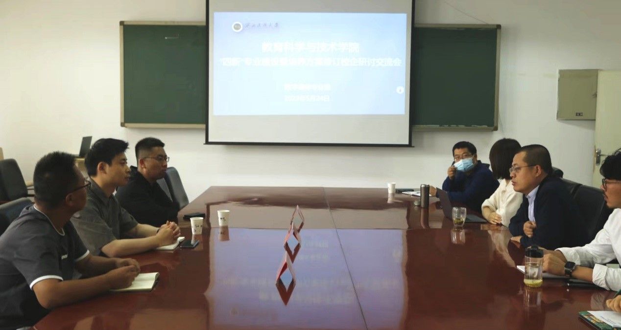 2023年5月24日上午,教育科學(xué)與技術(shù)學(xué)院在榆中校區(qū)格物二號樓南樓召開“四新”專業(yè)建設(shè)暨培養(yǎng)方案修訂校企研討交流會。交流會根據(jù)專業(yè)分教育技術(shù)專業(yè)組、數(shù)字媒體專業(yè)組兩個會場分別舉行。