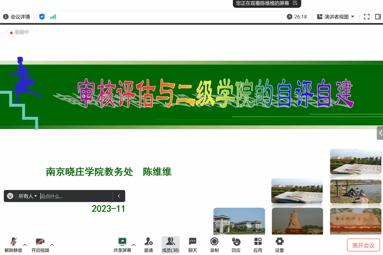 會議特別邀請了南京曉莊學院教務處處長陳維維教授為學院全體教職工做審核評估工作培訓。陳處長從教育教學審核評估的新要求、教育教學審核評估的自評自建和質量共同體打造——學院、教師視角三個維度解讀了本輪審核評估工作的各項要求和如何通過二級學院自評自建迎接審核評估工作。
