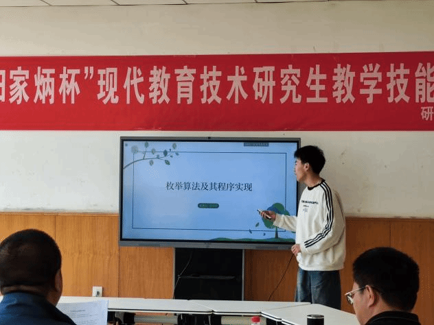 4月30日,由研究生處主辦、教育科學與技術學院承辦的“田家炳杯”現代教育技術專業學位研究生教學技能大賽校內選拔賽在榆中校區格物2號樓303舉行。本次大賽的評委由榆中縣崇文實驗學校信息中心主任邸鵬程,教育科學與技術學院沙景榮院長、王妍莉教授、祁蕓副教授及朱萬俠老師擔任。