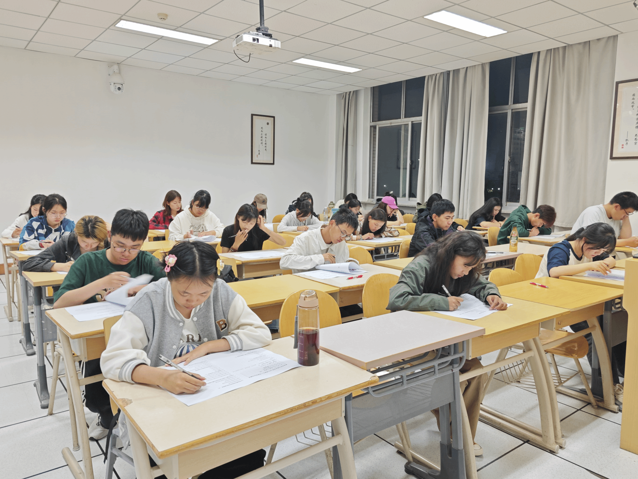 考場上,全體學生沉著冷靜,奮筆疾書,嚴格遵守著考試紀律。學院領導、教師及團委、學生會干部認真監考,為廣大考生營造安靜有序的考試環境。