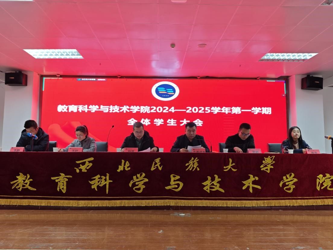 2024年12月12日晚,教育科學與技術學院在榆中校區就業大廳線上線下結合方式召開了2024—2025學年第一學期全體學生大會。