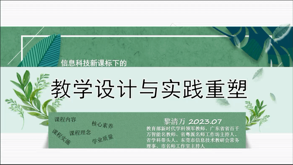 2023年10月19日晚,廣東省東莞市第六高級中學的黎清萬老師應邀為我院師生作了題為《信息科技課程標準解讀》的線上講座。講座由教育科學與技術學院王妍莉教授主持。學院全體教師、碩士生和部分本科生參加了本次講座。