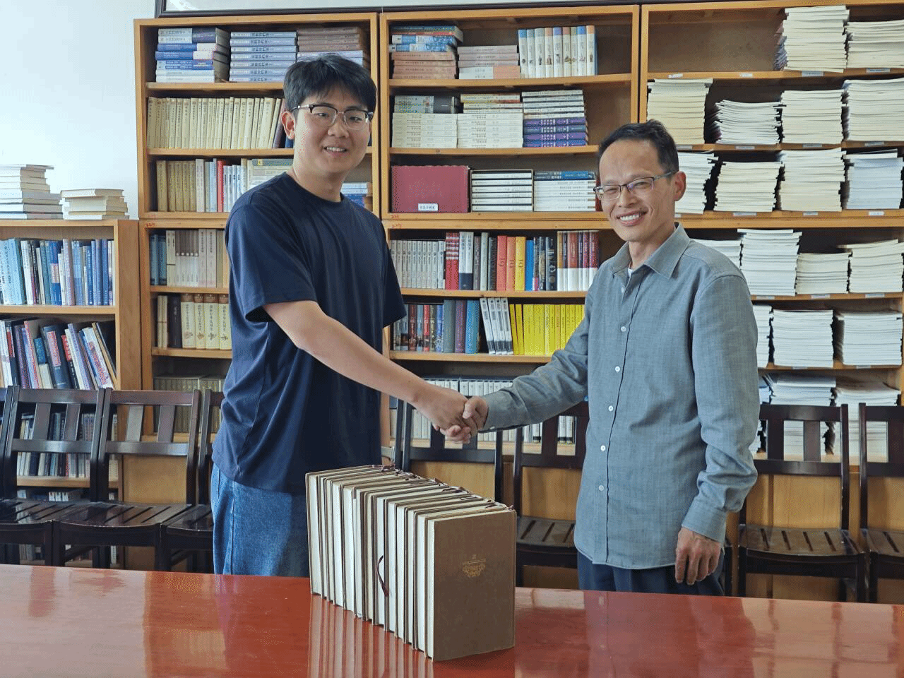 張牧寒同學已經被伯明翰大學錄取為碩士研究生。學院副院長趙光國和輔導員何藝培表示,希望他將購書資金留作求學所用,取得更好的個人成長和發展。張牧寒說:自己的捐贈想法由來已久,也得到了家長的支持和認可。這筆出資購書的資金是他大三學年的3000元獎學金。他只想在臨別之際,十分誠懇、迫切地希望能為學院做些什么,也為將來的學弟學妹們留下些學習資料,將來如有機會,再由自己或其他有心的同學集齊剩余卷……向培養了自己的學院表達哪怕是極其微薄的敬意和由衷的感謝。