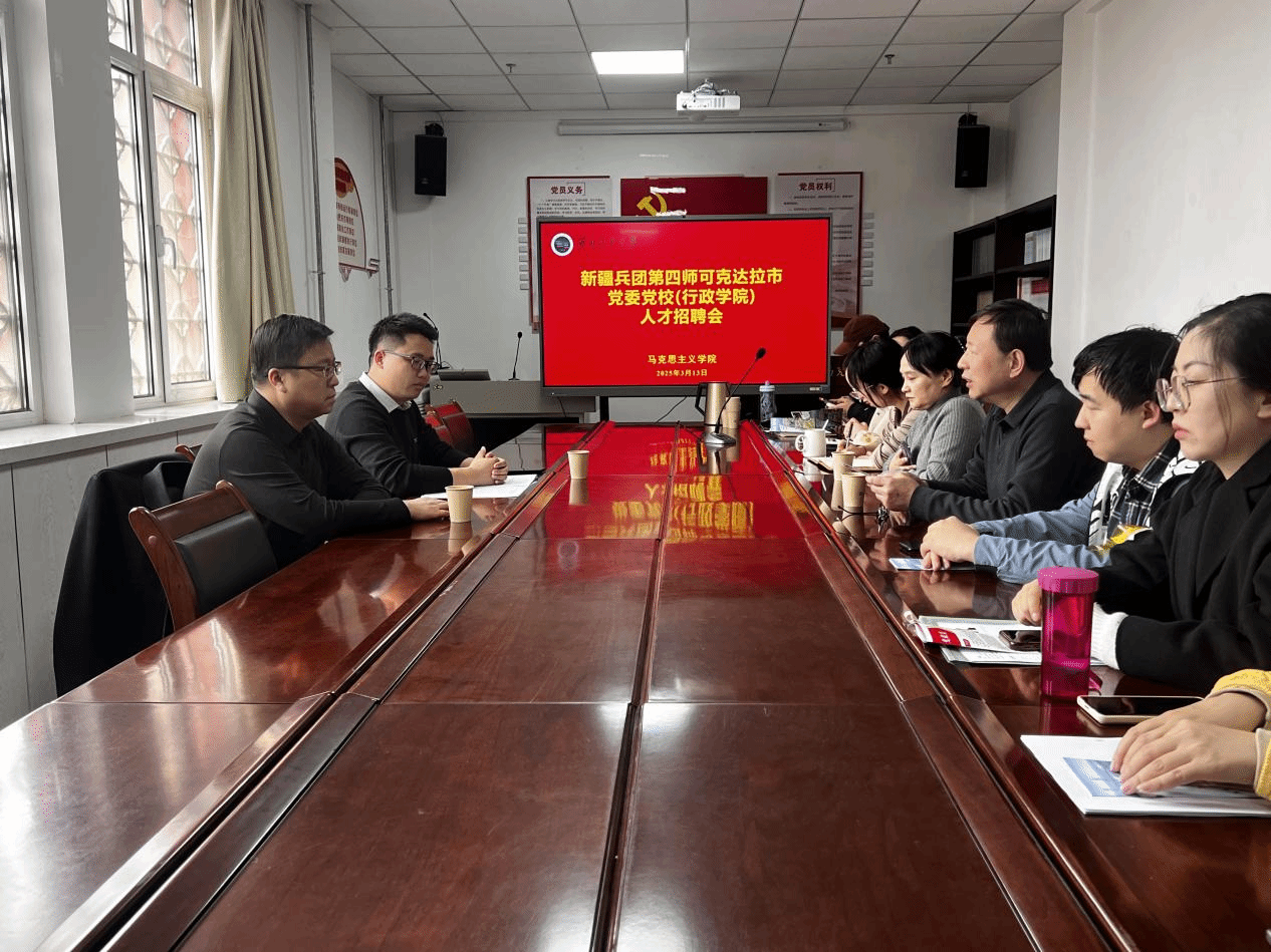 3月13日下午,新疆生產建設兵團第四師可克達拉市黨委黨校(行政學院)在學院進行人才招聘。學院2022級、2023級部分研究生參加了招聘會。