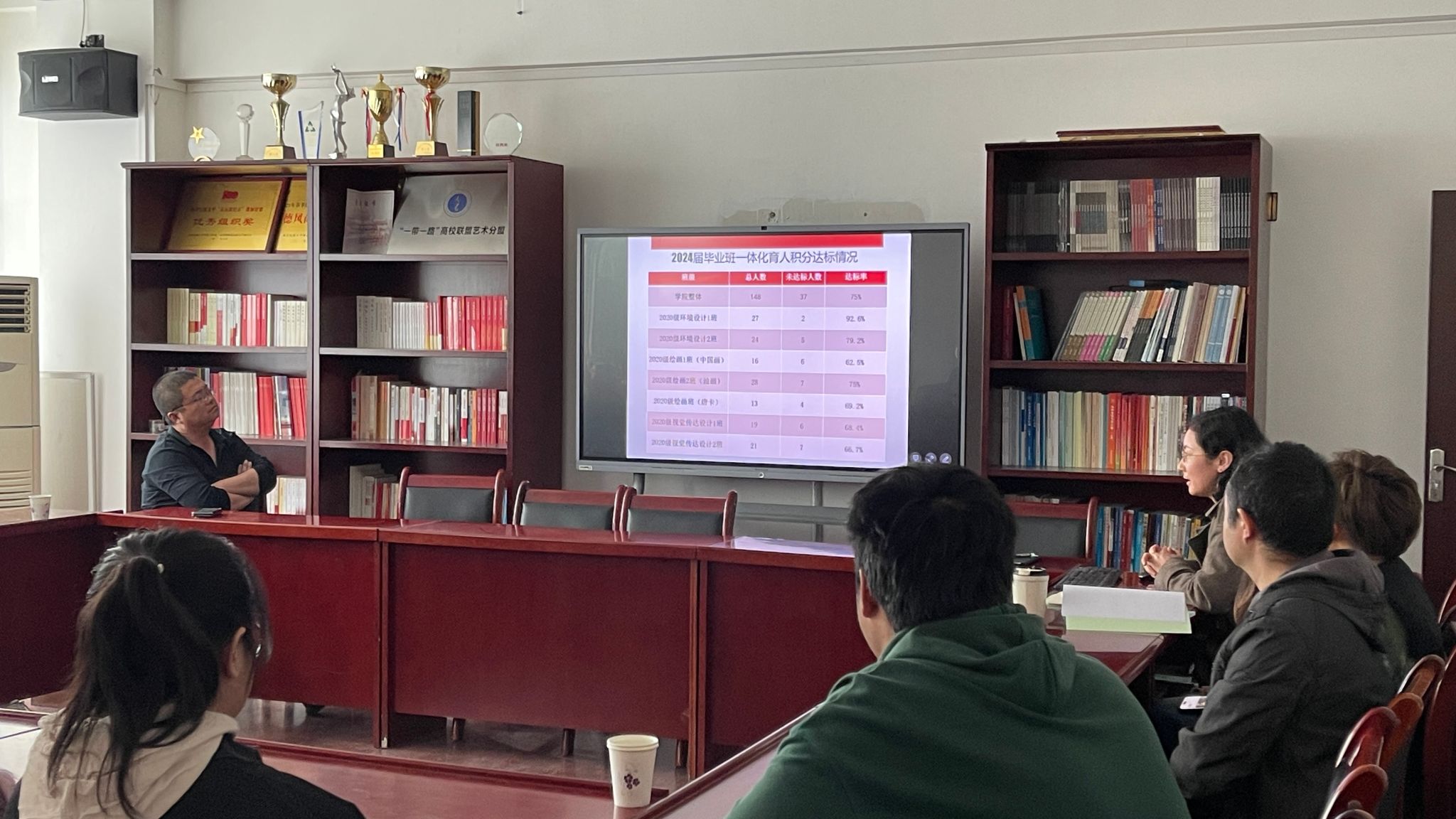 為進一步落實2024屆本科畢業生一體化育人工作,2024年4月10日下午,美術學院在美術樓209會議室召開畢業生一體化育人工作推進會,學院黨委書記蘇知洋、院長徐海翔、副院長馮炳超、畢業班班導師、團支部書記、一體化育人積分未達標的學生參加,會議由學院團委書記王媛媛主持。