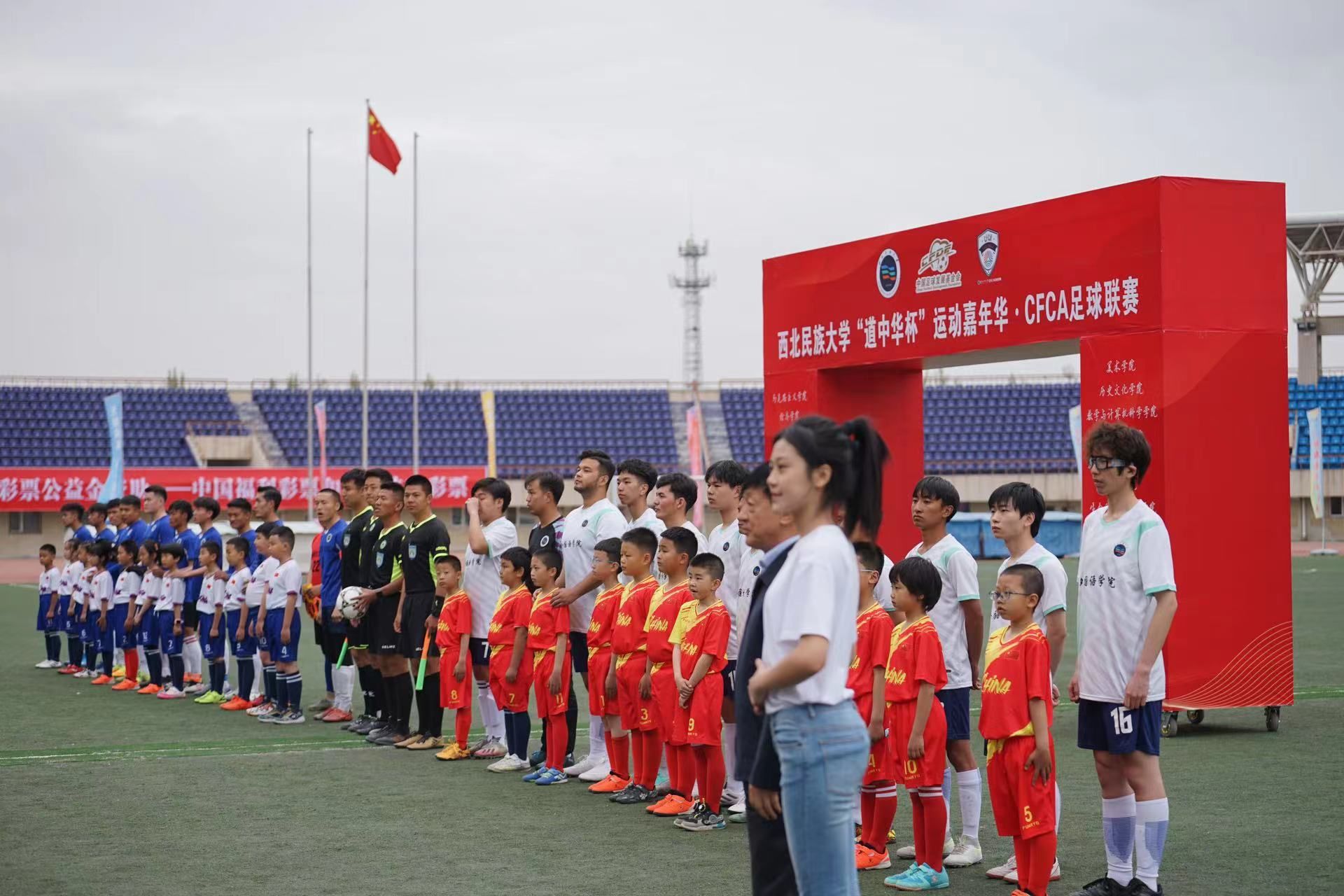 5月5日下午,“道中華杯”西北民族大學首屆CFCA校園足球聯賽在榆中校區民康體育場正式開幕。此次賽事由中國足球發展基金會、西北民族大學學生工作部(處)、團委和西北民族大學體育學院共同主辦。學校黨委副書記、副校長李輝,西北民族大學原黨委副書記王扎西,中國足球發展基金會籌資和財務部副部長常冬梅,北京公益服務發展促進會副會長康勇,學校各職能處室、各學院及附屬小學相關負責人參加了開幕式活動。西北民族大學體育學院院長謝智學主持開幕儀式。