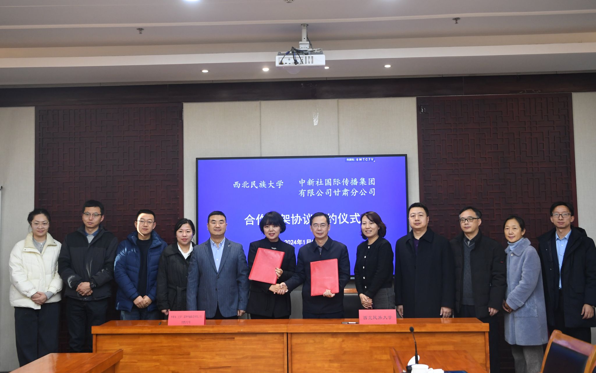 1月9日上午,學(xué)校與中新社(北京)國際傳播集團(tuán)有限公司甘肅分公司簽訂了合作框架協(xié)議。學(xué)校黨委書記張俊豪會見中新社甘肅分社社長殷春永,雙方就合作加強(qiáng)民族外宣工作進(jìn)行了交流。黨委副書記石迎春、中新社(北京)國際傳播集團(tuán)有限公司甘肅分公司總經(jīng)理南如卓瑪分別代表雙方簽約。