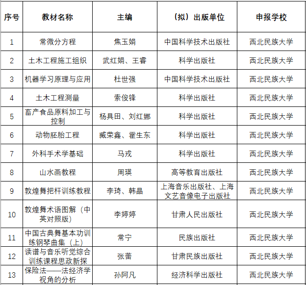 甘肅省“十四五”普通高等教育省級規劃教材建設項目名單