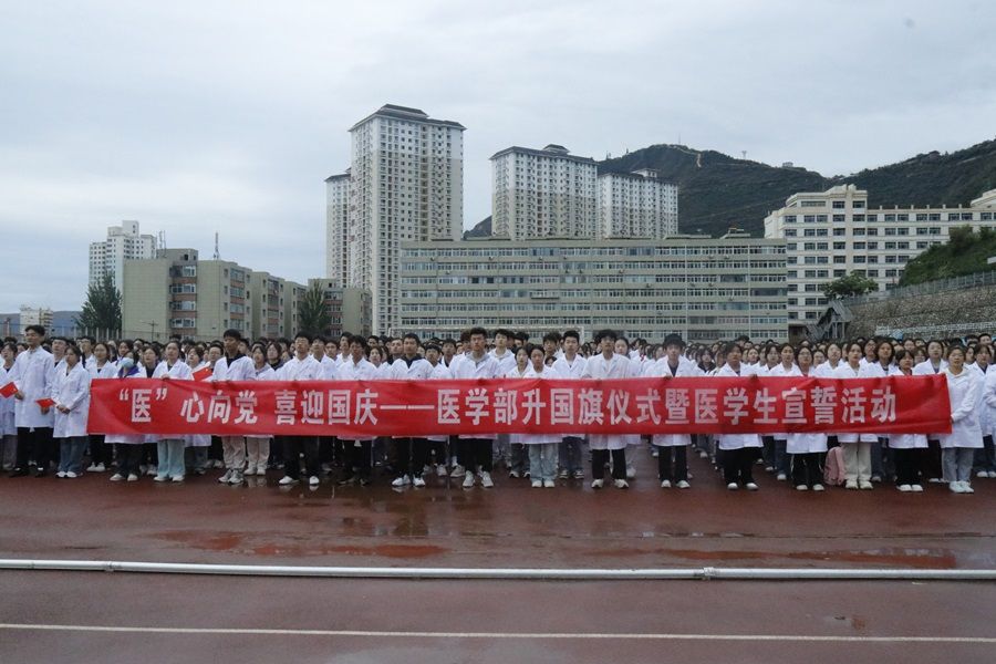 9月29日上午8時,醫(yī)學(xué)部全體師生在西北新村校區(qū)民和體育場隆重舉行了慶祝新中國成立75周年升國旗儀式暨醫(yī)學(xué)生宣誓活動。