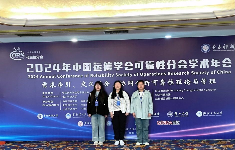 4月19日-21日,2024年中國運籌學會可靠性分會學術年會在成都家園國際酒店舉行,本次會議旨在貫徹落實黨的二十大精神,推動高質量發展,加快建設制造強國和質量強國,以“需求牽引、交叉融合、協同創新可靠性理論與管理”為主題,邀請了可靠性相關領域國內外知名專家和優秀青年學者作大會主旨報告及專題交流報告。研究生黃嬡、馬嵐、張琦睿三人參加了此次會議。