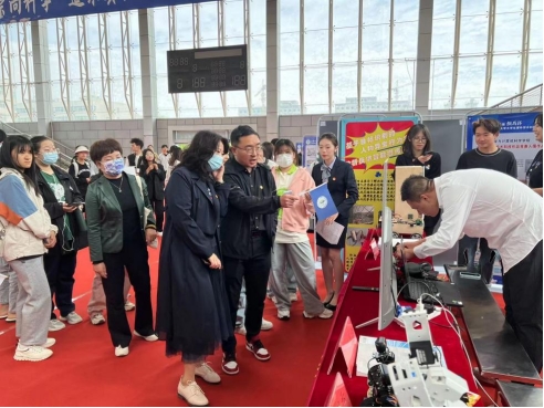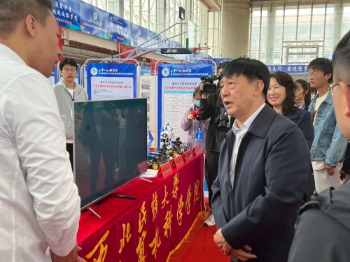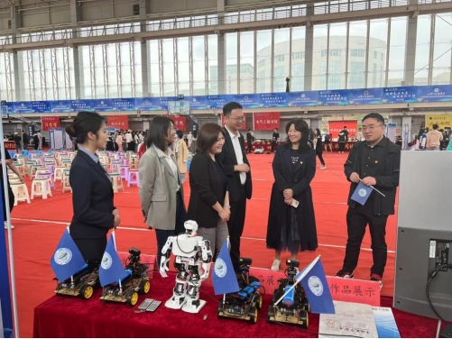作品展示期間,校黨委副書記、副校長李輝,多位老師蒞臨我院展區指導,充分肯定我院學子的努力并鼓勵同學們繼續發揚創新精神、再接再厲做出更好的成績。在場的同學們也紛紛參觀我院展示作品,與項目負責人進行互動。