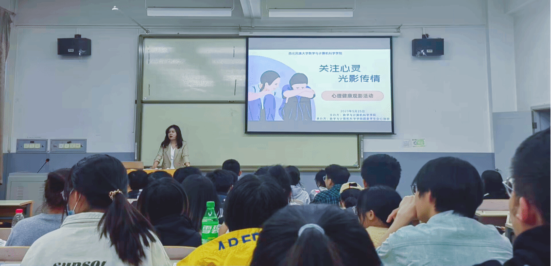 觀影前,學(xué)院心理健康負(fù)責(zé)人木尼熱老師介紹了此次活動(dòng)舉辦的背景與意義,介紹了相關(guān)的心理健康知識(shí),呼吁大家能正確理解和關(guān)愛心理問題人群,讓大家能更好地去理解影片的情感與內(nèi)涵。