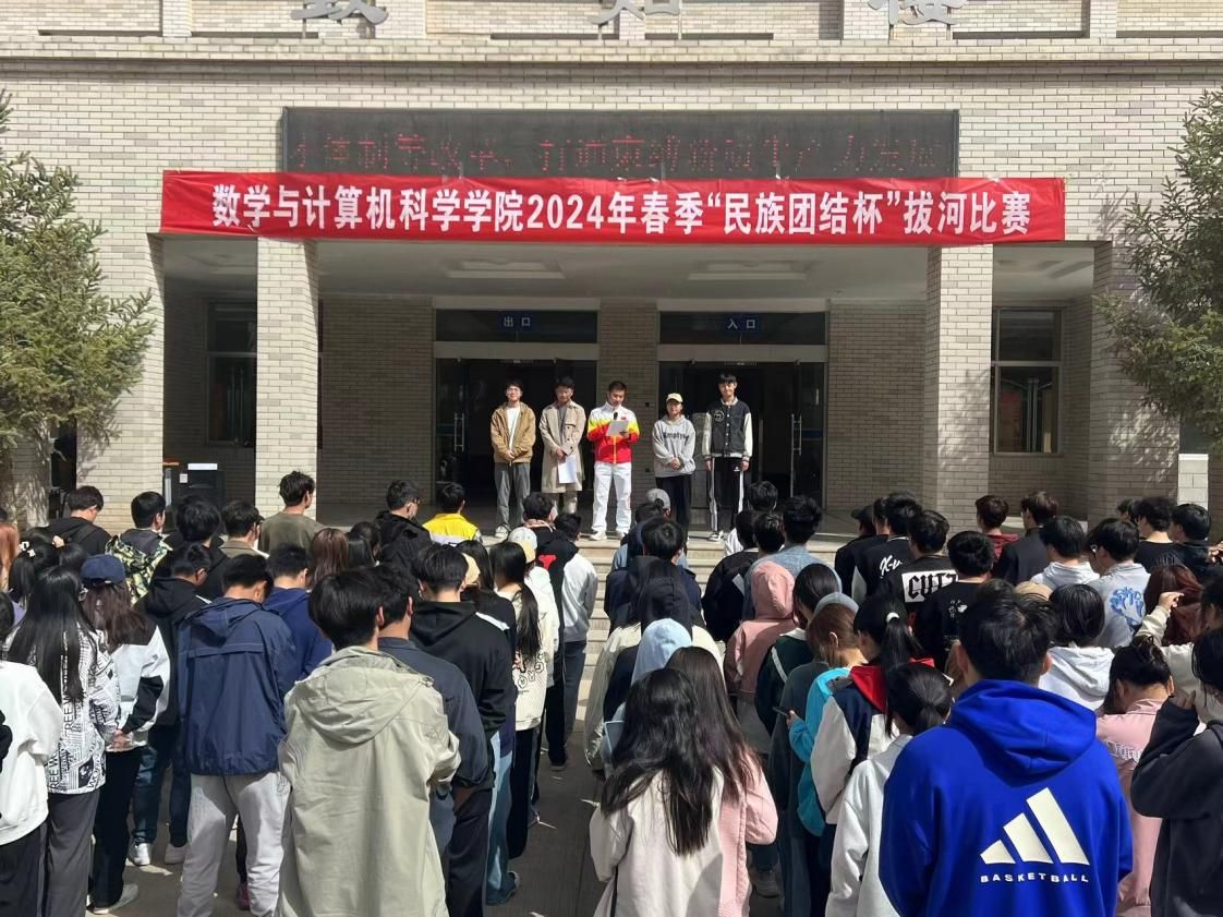 為豐富同學們的校園文化生活,深化鑄牢中華民族共同體意識教育,提高學生身體素質和健康水平,凝聚愛國、團結、奮進的積極力量,激發全院學生的愛國熱情和奮斗精神。3月30日,數學與計算機科學學院舉辦2024年春季“民族團結杯”拔河比賽,學院輔導員和全體學生參加活動。