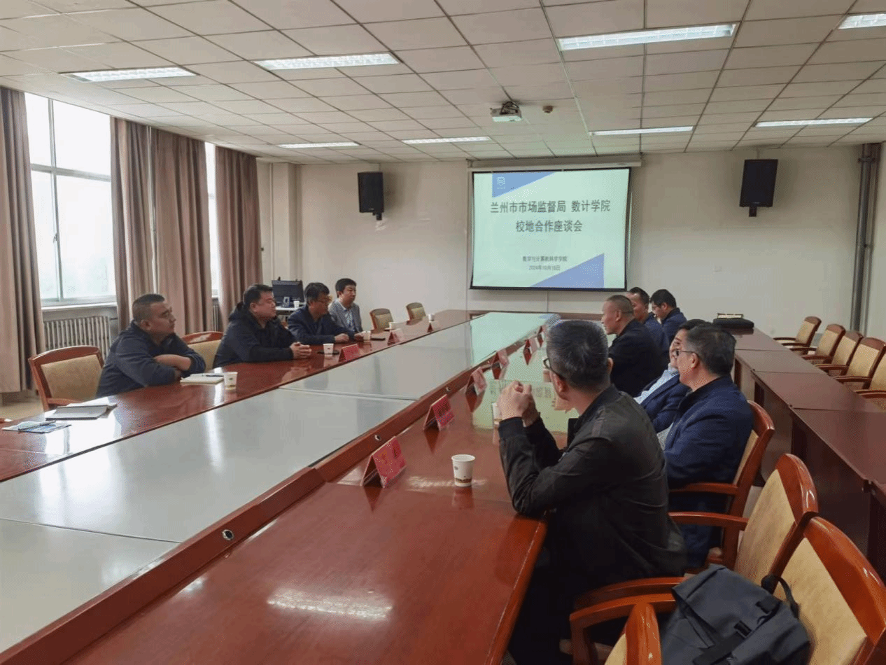 宣講會后,蘭州市市場監督局曹彥明副局長,國家級蘭州經濟技術開發區有關負責同志等和校友祁生勝一起來到學院并與學院領導進行了座談,雙方就校地合作以及師生培養平臺搭建,產學研轉化、實習實訓基地等工作進行了深入溝通。