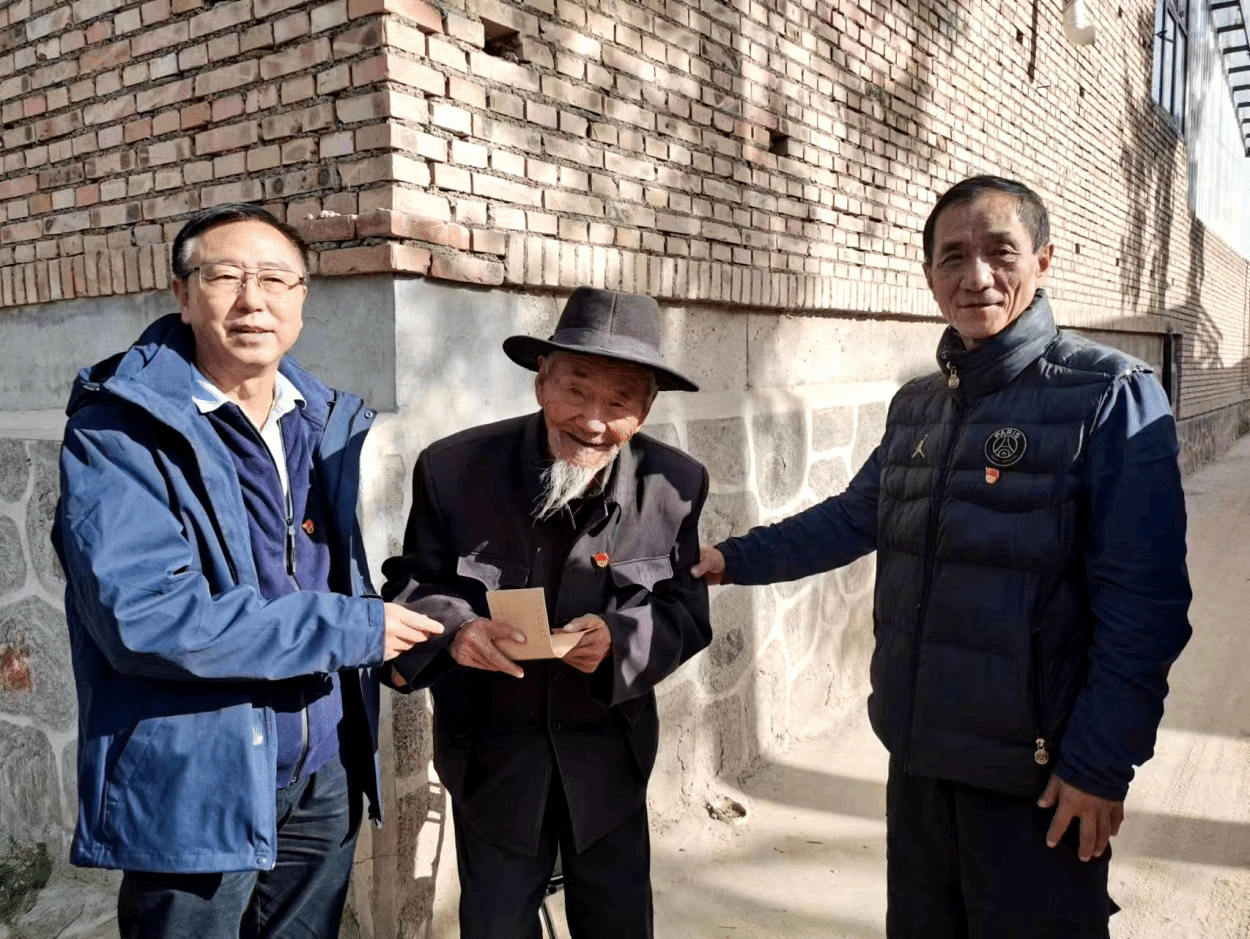 會(huì)議結(jié)束后,開(kāi)展入戶(hù)慰問(wèn),學(xué)院領(lǐng)導(dǎo)、駐村工作隊(duì)、包村干部、村兩委成員入戶(hù)(96歲、在黨50年老黨員)房強(qiáng)華家慰問(wèn),了解老人身體生活情況,存在的困難、發(fā)放慰問(wèn)金等。