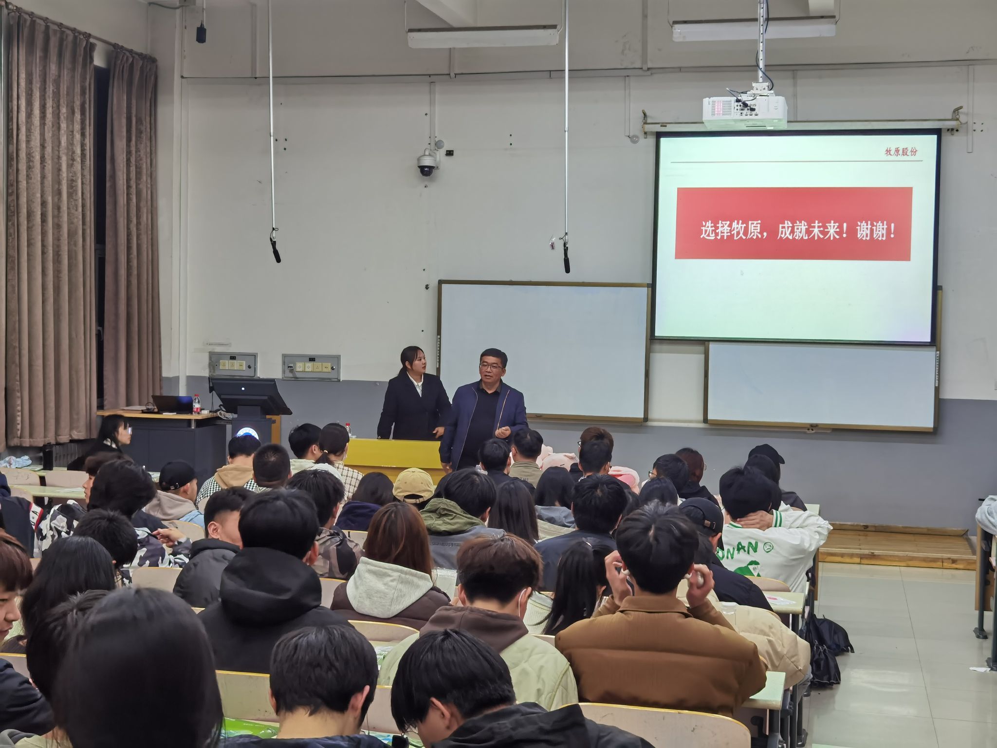 牧原集團始創于1992年,歷經32年發展,現已形成集飼料加工、種豬育種、商品豬飼養、屠宰肉食為一體的豬肉產業鏈,業務遍及全國25省。公司始終秉承“讓人們吃上放心豬肉”的美好愿景,致力于打造安全、美味、健康的高品質豬肉!宣講會上,用人單位負責人介紹了公司概況、崗位需求和福利待遇,并就學生關心的職業發展、工作地點等問題進行了耐心解答;2024屆動物醫學專業畢業生侯雅潔分享了自己的牧原求職之路,目前她已成功簽約。
