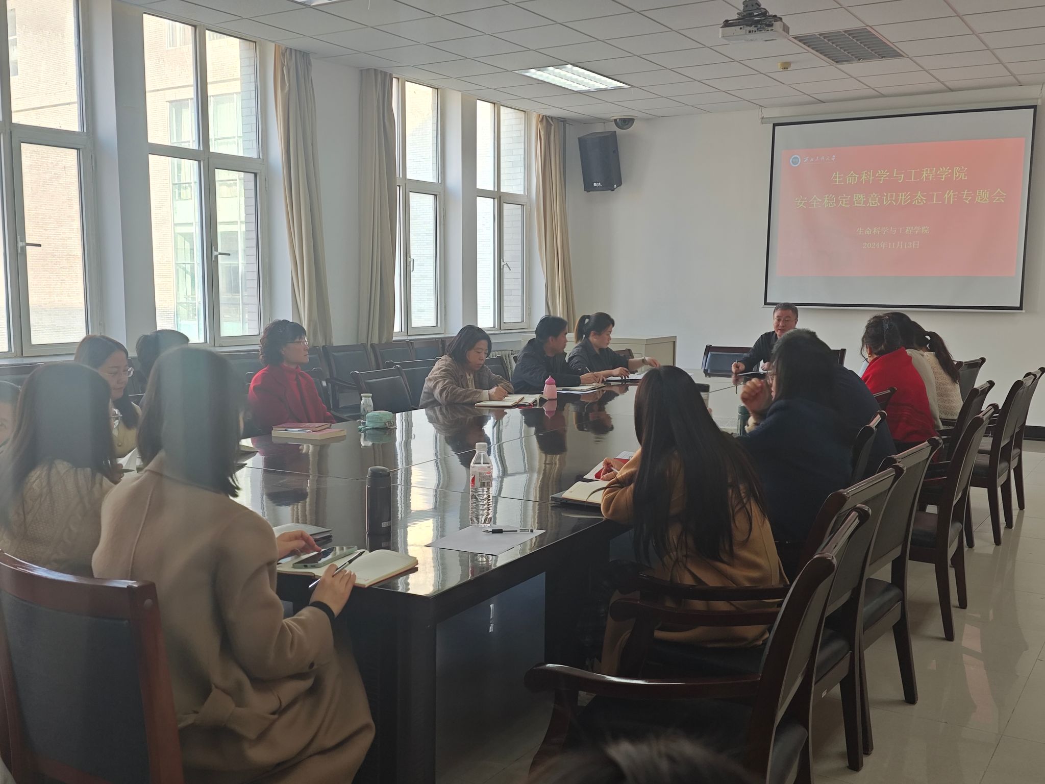 11月13日,生命科學與工程學院召開安全穩定暨意識形態工作專題會。學院全體教職工參會。