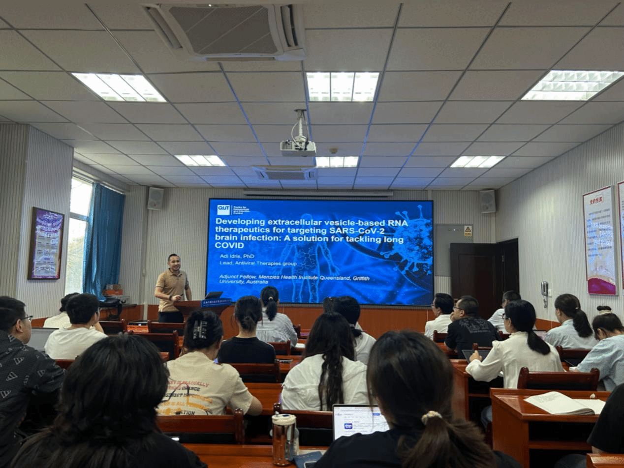 5月28日,Adi Idris博士在生物工程樓會議室為我校師生做了題為《基于RNA靶向治療SARS-CoV-2腦感染的胞外囊泡研發:針對長新冠綜合征的解決方法》的學術報告,生物醫學研究中心教師、研究生30余人參加了本次學術報告。