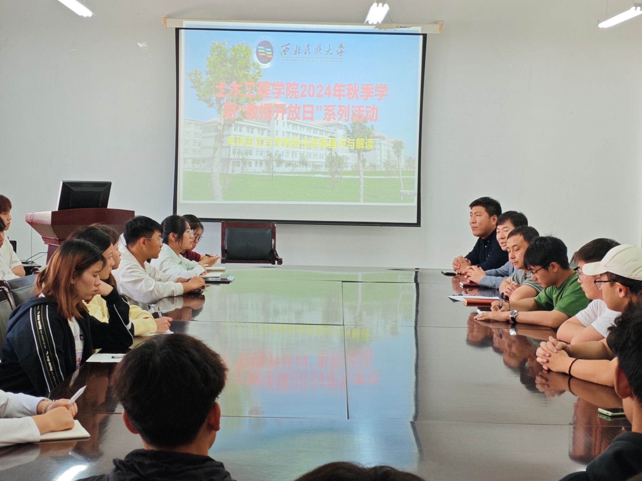 為幫助同學(xué)們深入了解考研形勢(shì)、學(xué)院研究生招生政策和明確備考方向,2024年9月26日中午,土木工程學(xué)院在力行樓304會(huì)議室進(jìn)行以“考研形勢(shì)與學(xué)院招生政策”為主題的教授開放日活動(dòng),活動(dòng)以師生面對(duì)面交流座談形式開展。