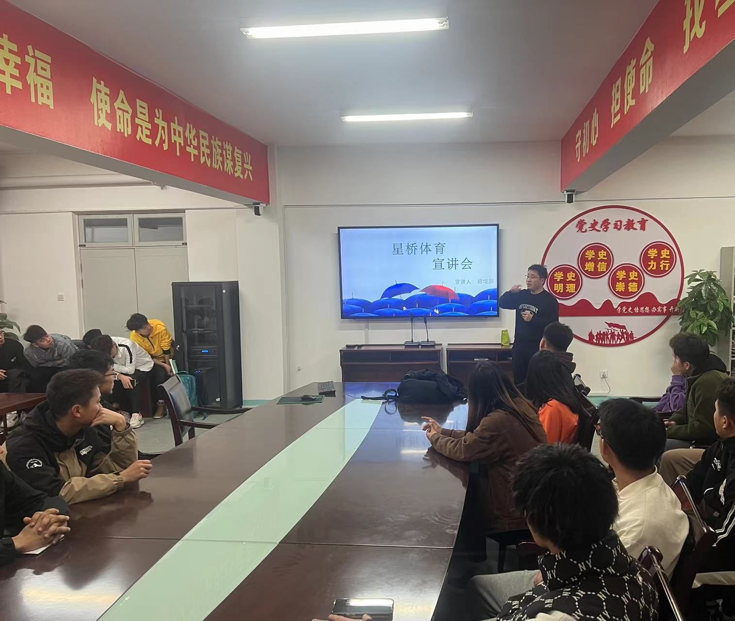 招聘會上,該公司集團人力資源部培訓經理謝偉從公司的規章制度、福利待遇、企業文化、現有產業結構等幾個方面向同學們做了宣講介紹,并就畢業生所關心的問題進行了解答。西安星橋體育文化傳播有限公司是以青少年體育為基礎,打造基于體育教育、體育賽事、場館運營、體育裝備、體育旅游、體育智能、體育大健康為一體的體育生態平臺, 致力于將體育的精神力量向大眾更為廣泛的傳遞,目前在全國各地有多家分公司。