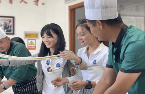 “杏福上線”科技興農實踐團成員前往東鄉(xiāng)職業(yè)技術學校實訓基地開展了研學活動,到達研學地點后,了解觀摩學習當?shù)孛袼孜幕懊朗车闹谱鬟^程,每位成員都切身體驗了特色美食的制作。通過此次活動,使每位成員都能在研學中進行探究性、實踐性與綜合性的思考,充分感受東鄉(xiāng)的特色美食,為直播提高東鄉(xiāng)美食的銷售做好前期調研工作。