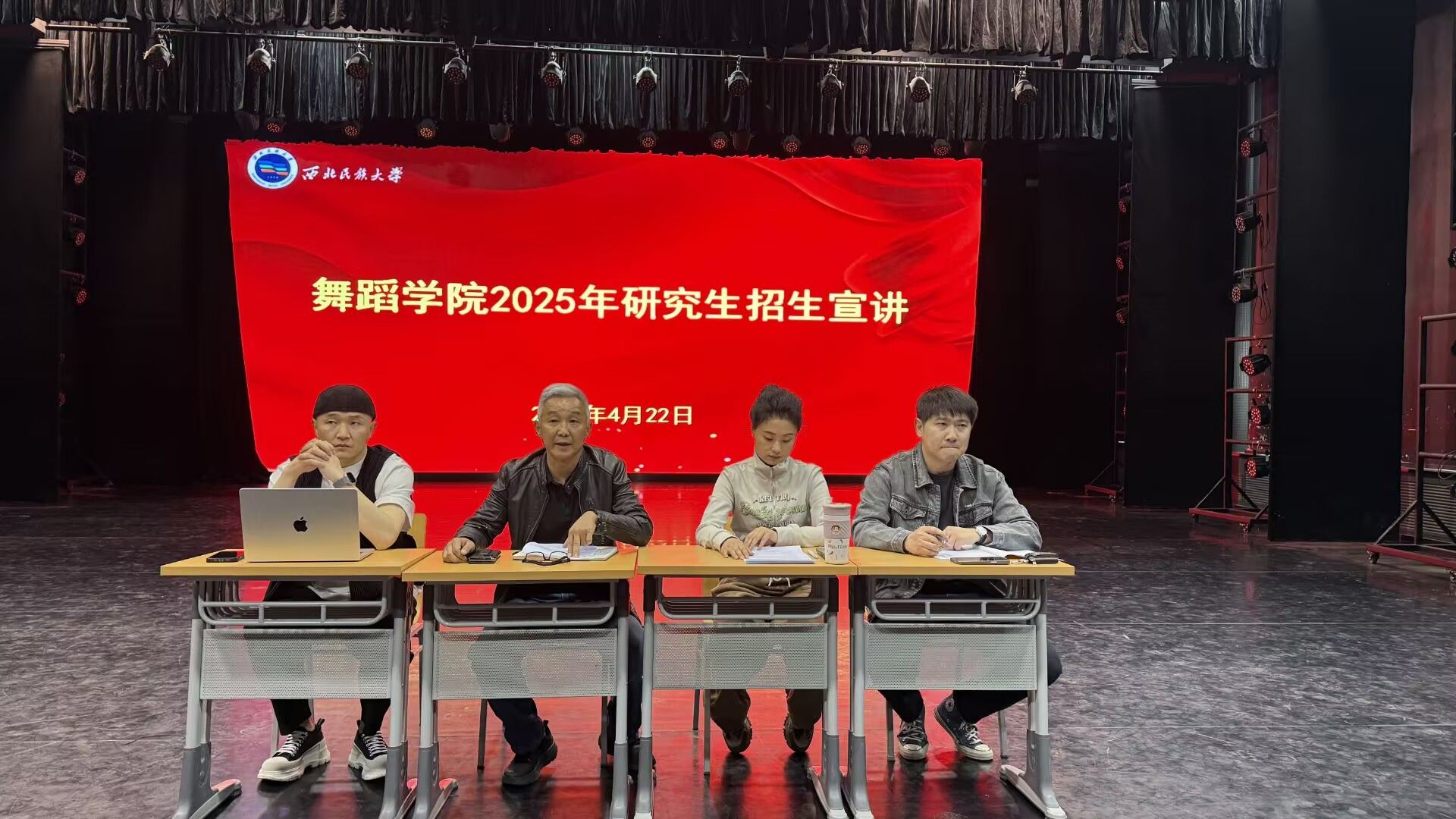 為構建多維度的學風教育實踐場域,激發學生考研熱情,助力學生科學規劃發展方向,4月22日,舞蹈學院2025年研究生招生宣講動員大會在舞蹈樓小劇場舉行,學院相關負責人、學位點負責人、研究生干事及2022級全體學生參加動員大會。會議由副院長鐘志峰主持。