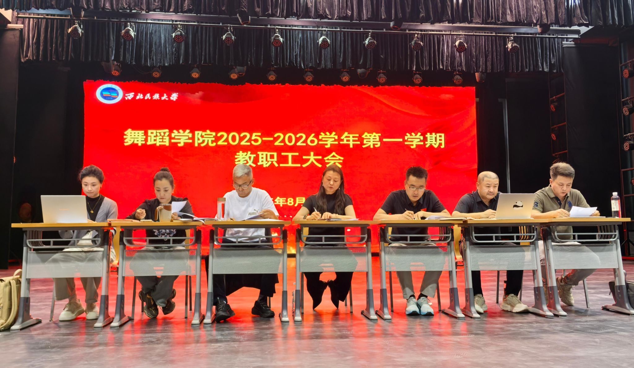 2025年8月29日,舞蹈學院在舞蹈樓小劇場組織召開了新學期開學初教職工大會。學院領導班子成員、全體教職工及外聘教師近50人參加了此次大會。會議由學院黨委副書記、副院長魏俊閃主持。